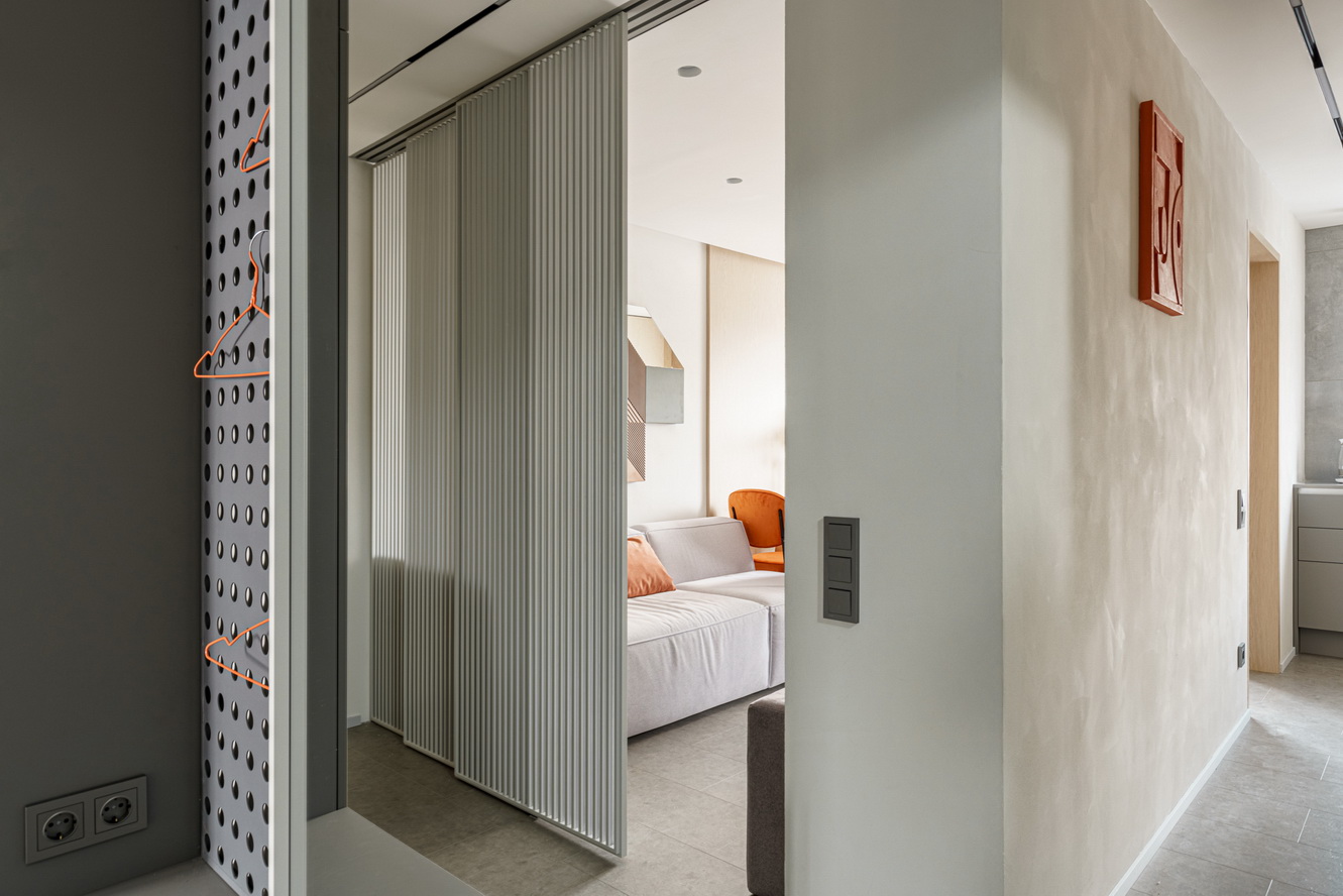 Дизайнеры Диана Карнаухова и Виктория Лукьянова продумали до мелочей буквально всё. На полу — кварцевый ламинат из коллекции Fargo Stone Горный Хрусталь JC 11013. На полу нейтрального цвета создали интерьер из терракотово-серой палитры с добавлением сиреневого.